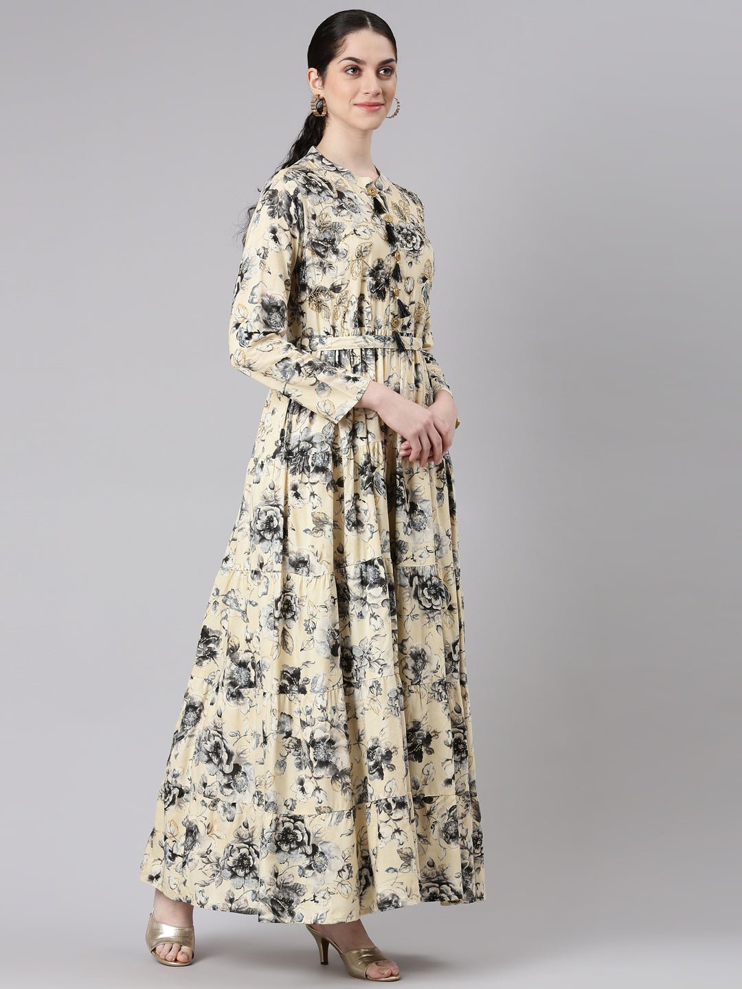 Sadguru Cream Floral Printed Maxi Dresses Feel comfortable and stylish at the same time with this beautiful floral maxi dress.