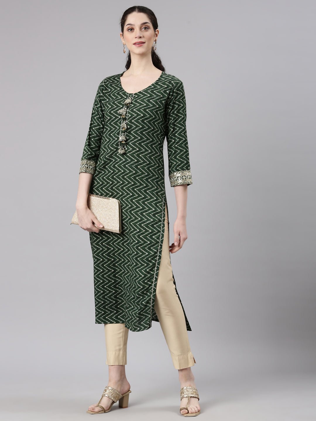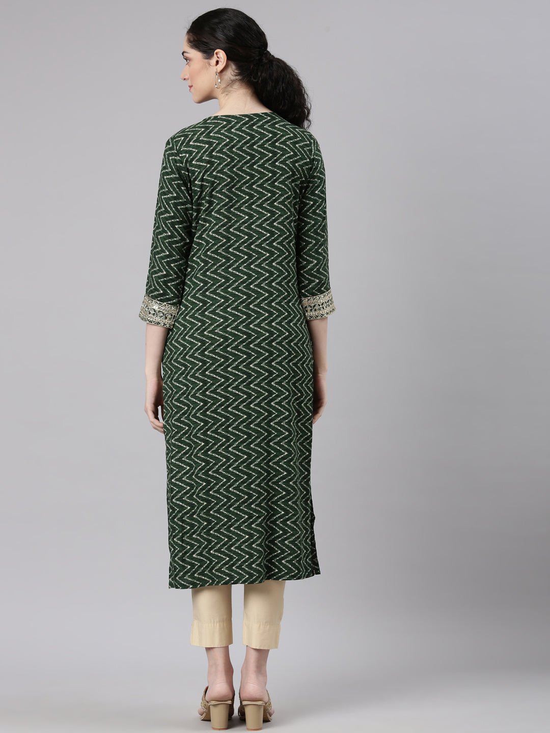 Sadguru Green Straight Casual Chevron Kurtas Experience the perfect blend of comfort and style with our Sadguru Chevron Kurtas.