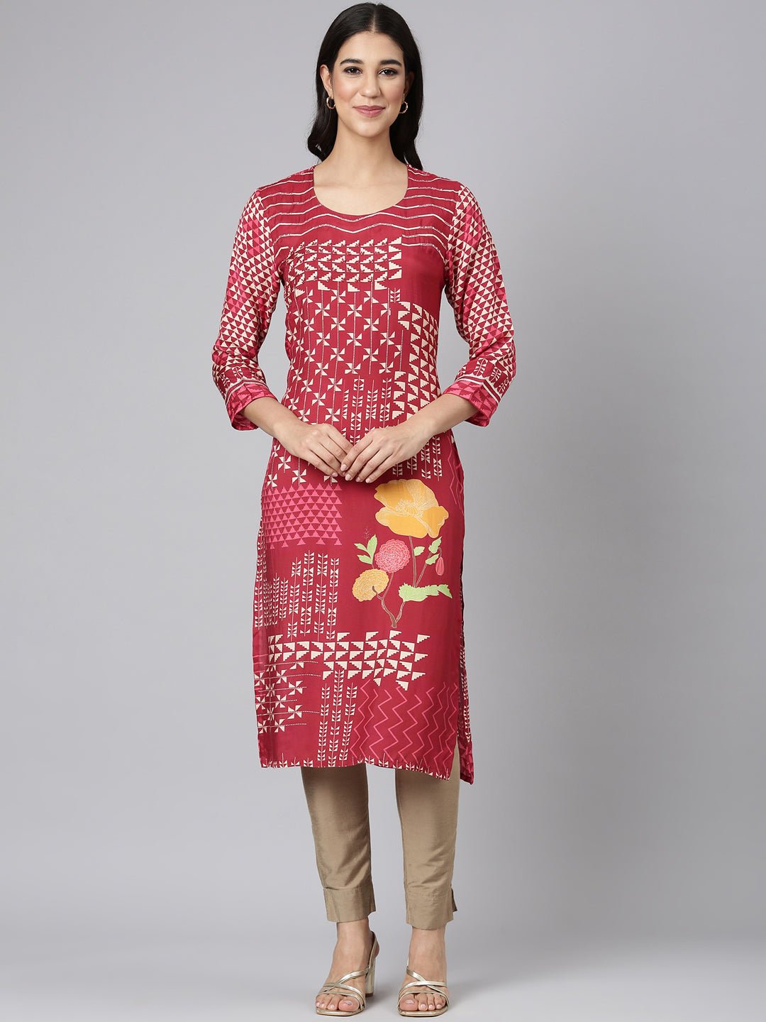 This maroon casual kurta combines comfort with style through its beautiful tribal detailing and flattering straight cut. Perfect for your everyday wardrobe, it’s designed to keep you feeling confident and looking elegant. The rich maroon shade complements various skin tones while the quality craftsmanship ensures you’ll enjoy wearing it for many occasions.