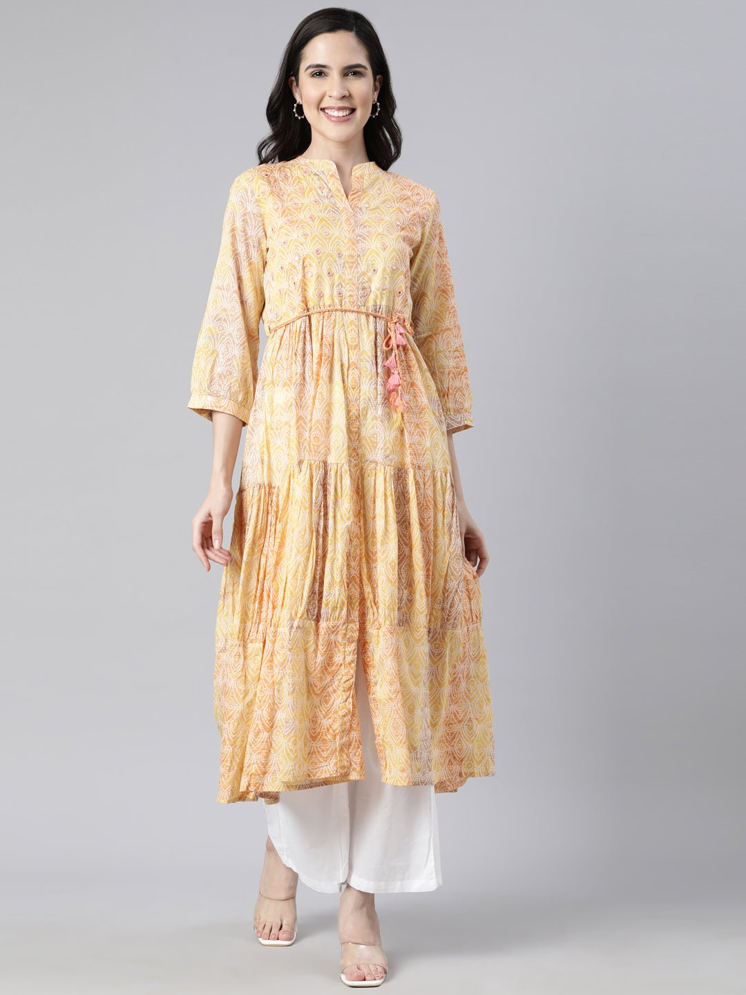 Sadguru’s Yellow Floral Maxi Dresses exude elegance and sophistication.